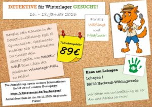unser Winterlager findet nächstes Jahr wieder in einem Selbstversorgerhaus statt. Wir haben insgesamt ca. 30 Plätze für Teilnehmer.